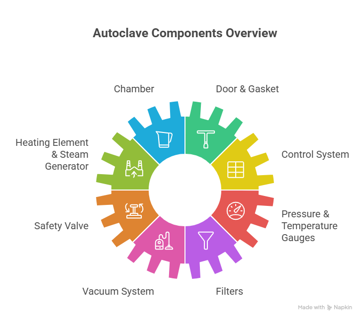 The Ultimate Guide to Autoclave Parts- What They Do and Why They Matter Posted by Philip on 28th Oct 2025 Autoclaves play a vital role in sterilization across laboratories, hospitals, and industrial settings, but their performance depends mainly on quality and reliability. Understanding autoclave parts is key to ensuring safety, efficiency, and consistent results. Each piece, from gaskets and valves to sensors and heating elements, has a specific role in maintaining pressure, temperature, and sterilization cycles. Over time, wear and tear reduce the functionality, so sourcing high-quality replacement autoclave parts is essential for minimizing downtime and avoiding costly failures. Beyond keeping a unit operational, knowing how different autoclave components interact can help technicians identify issues early, extend equipment lifespan, and maintain compliance with strict sterilization standards. This guide will walk you through the most critical parts, explain what they do, and highlight why they matter, whether maintaining a single unit in a clinic or managing multiple autoclaves in a high-volume facility. Why Understanding Autoclave Parts Is Crucial? Autoclaves are only as dependable as the autoclave parts that keep them running. Every gasket, valve, heating element, and sensor works together to create the pressurized environment to eliminate harmful microorganisms. If these autoclave components fail, the sterilization process may be incomplete, potentially leading to contamination risks. This is particularly critical in healthcare, where the CDC reports that healthcare-associated infections affect one in 31 patients daily in the United States, underscoring the importance of reliable sterilization equipment. Beyond safety, proper knowledge of replacement autoclave parts helps control operational costs. Timely maintenance and part replacement reduce downtime, prevent expensive repairs, and extend the equipment’s lifespan. This proactive approach is vital as demand for autoclaves continues to rise. The global autoclave market was priced at USD 2.25 billion during 2022 and is expected to grow to USD 3.53 billion by 2030 (CAGR 5.8%), evidence of facilities investing in reliable sterilization solutions. Understanding the role of each part ensures consistent performance, compliance with regulations, and protection for both staff and patients. In short, mastering the details of autoclave parts is not just technical knowledge but a foundation for safety and cost efficiency. Core Components of Every Autoclave Every autoclave relies on a precise combination of parts to function safely and effectively. From the chamber to the smallest filter, each element plays a role in maintaining sterilization standards and ensuring long-term reliability. Understanding these components and when to replace them, whether with OEM or aftermarket autoclave parts, is critical for consistent performance. Chamber The chamber is the central vessel, typically stainless steel, designed to withstand high heat and pressure. Its double-walled jacket uplifts thermal efficiency by circulating steam evenly throughout the chamber. A well-maintained chamber ensures effective sterilization and prevents leaks or pressure failures. Regular inspection for corrosion or damage helps extend its lifespan and avoid costly downtime in healthcare and laboratory settings. Door & Gasket The door seals the chamber, while the autoclave gasket ensures airtight closure during sterilization. Over time, wear, cracking, or stiffness signal the need for a door gasket replacement. A compromised gasket can lead to steam leakage and cycle failures. Regular maintenance and proper material selection, such as high-temperature silicone or EPDM, are vital for reliable sterilization and safe pressure retention. Heating Element & Steam Generator The heating element and steam generator work together to produce the steam required for sterilization. Some autoclaves rely on internal electric heating, while others use external boilers for larger capacities. Routine maintenance of these components ensures consistent steam quality. Replacing worn elements with OEM or aftermarket autoclave parts helps sustain efficiency, prevent uneven heating, and maintain reliable sterilization cycles. Control System Modern autoclaves feature digital microprocessor-based controls that precisely adjust temperature, pressure, and cycle time. Many also include data logging to support compliance with regulatory standards. In contrast, older models may use manual controls. Regardless of type, ensuring the control system functions correctly reduces operator error, enhances safety, and improves consistency across sterilization processes. Safety Valve One of the essential safety features is the safety valve, which prevents dangerous overpressurization within the chamber. It automatically releases excess pressure, protecting both users and equipment. Regular testing and timely replacement of this valve are essential for compliance and safety. Ignoring maintenance increases the risk of malfunctions, making the safety valve one of the most critical parts of an autoclave. Pressure & Temperature Gauges Gauges provide operators with real-time data on sterilization cycles, ensuring the chamber reaches and maintains correct parameters. Faulty readings can compromise sterilization effectiveness. Routine calibration and replacement of these gauges, whether with OEM or aftermarket autoclave parts, ensure accurate monitoring. Reliable gauges are not just performance tools. They are compliance essentials for healthcare and laboratory environments. Vacuum System (Pre-vacuum Models) In pre-vacuum autoclaves, the vacuum system removes air from the chamber before sterilization. This step is crucial for sterilizing porous materials like fabrics and surgical packs. Air removal ensures steam penetrates deeply, maximizing sterilization efficacy. Maintenance of pumps and seals within this system reduces ene